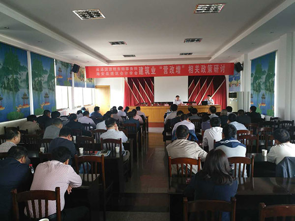 集團(tuán)公司董事長馬和軍在培訓(xùn)前做動員講話,他要求集團(tuán)上下要高度重視“營改增”給建筑行業(yè)帶來的沖擊和機(jī)遇,參培人員要虛心聆聽財稅專家的講解,認(rèn)真學(xué)習(xí)、理解、適應(yīng)“營改增”政策,在新的稅制改革起跑線上,要用新的思維、新的架構(gòu),不斷完善新的管理流程,以務(wù)實有效的行動積極應(yīng)對“營改增”。培訓(xùn)邀請了縣建筑會計學(xué)會會長黎勝玉高級會計師、海安縣國稅局稅征科科長劉家健、海安國源稅務(wù)事務(wù)所所長徐進(jìn)注冊稅務(wù)師等專家,分別從營改增的目的和意義、解讀營改增試點文件及通告、營改增實務(wù)及納稅申報等進(jìn)行了講解。