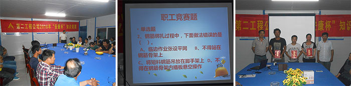 6月9日,普及安全生產(chǎn)知識及技能,組織所屬項目部開展“安康杯”知識競賽,參賽人員經(jīng)過筆試、激烈的搶答等環(huán)節(jié),最終板橋A地塊二期二標(biāo)段項目榮獲團(tuán)體一等獎、新港龍庭項目榮獲團(tuán)體二等獎、善水灣項目榮獲團(tuán)體三等獎,此次競賽既普及了安全知識,又增強(qiáng)了團(tuán)隊的凝聚力。同時工程公司對施工現(xiàn)場進(jìn)行拉網(wǎng)式安全檢查,對危險性較大的分部分項工程進(jìn)行專項檢查,排除安全隱患,防止事故的發(fā)生。