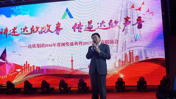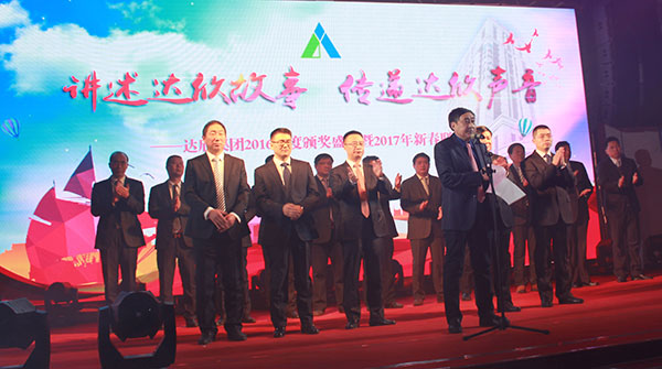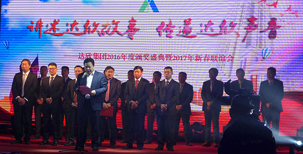 集團黨委書記劉厚純宣讀了表彰決定, 縣領導為獲得集團2016年度的創(chuàng)優(yōu)標桿、實力標桿、項目標桿與管理標桿、達欣新銳等先進個人代表進行了頒獎。