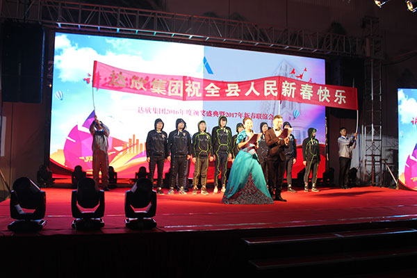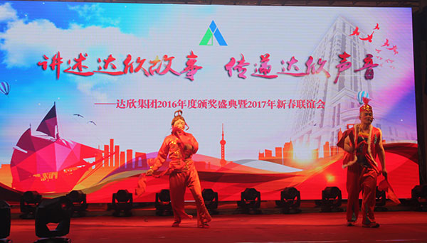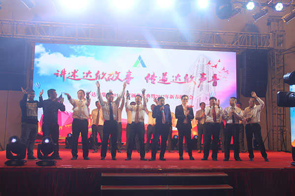 集團高管們在澎湃的“達欣之歌”聲中激情登場,公司董事長馬和軍進行了致辭答謝。他回顧了公司 一年來所取得的輝煌成績,感謝社會各界及公司全體同志們的努力,并對公司的未來發(fā)展之路描繪了藍圖;接著,縣委書記陸衛(wèi)東發(fā)表重要講話, 他指出,建筑業(yè)是我縣的傳統(tǒng)產業(yè),也是一個富民強勢產業(yè),還是我縣財政收入的重要來源之一,作為縣內的骨干企業(yè),達欣公司步入了公司歷史以來發(fā)展最快、榮譽最高、分配最多、貢獻最大的時期,他希望公司要加快發(fā)展,高起點定位,突出重點,好中求快,實現(xiàn)達欣新飛躍。