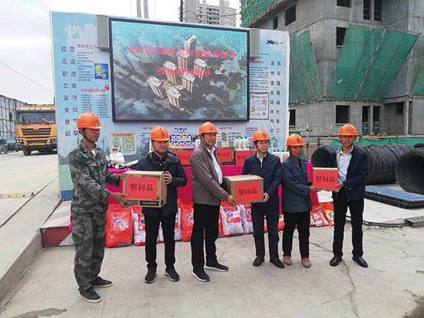工程公司指導(dǎo)員徐修同對賈局長一行的到來表示熱烈的歡迎。隨后,賈局長一行參觀了項目施工現(xiàn)場,徐修同就君豪項目做了簡單介紹。賈局長對施工現(xiàn)場各項工作的有序開展表示充分肯定,同時叮囑項目管理人員不僅要保證工程質(zhì)量、安全和進度,還要切實保障建筑工人的合法權(quán)益,關(guān)心建筑工人的工作與生活。最后賈局長一行將慰問品發(fā)放到工人的手中。