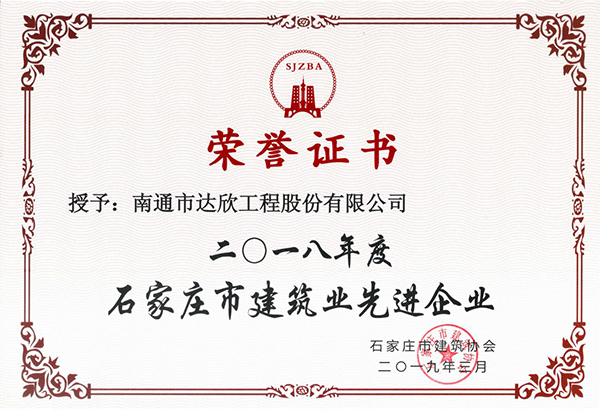 我司被石家莊市建筑協(xié)會評為“2018年度石家莊市建筑業(yè)先進(jìn)企業(yè)”同時,楊靜同志評為“2018年度石家莊市建筑業(yè)優(yōu)秀企業(yè)經(jīng)理”,劉紅強(qiáng)同志被評為“2018年度石家莊市建筑業(yè)優(yōu)秀項目經(jīng)理”,被河北省建筑業(yè)協(xié)會評為“2018年度河北省建筑業(yè)先進(jìn)企業(yè)”、“河北省建筑業(yè)AAA級社會誠信企業(yè)”,這是我司連續(xù)多次獲此殊榮;同時,徐仁忠、楊靜同志被評為“2018年度河北省建筑業(yè)優(yōu)秀企業(yè)管理者”,傅海榮同志被評為“2018年度河北省建筑業(yè)優(yōu)秀總工程師”。