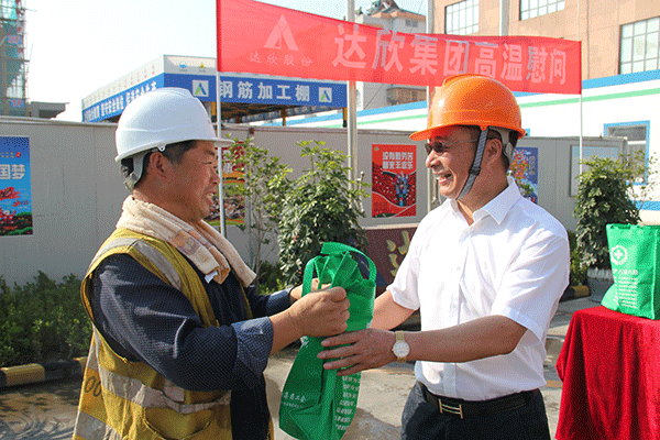 在萬豪國際四期4#樓項目上,劉厚純書記對項目工程質(zhì)量的提升給與了充分肯定,并對項目負責人花忠春提出了高標準高要求把控質(zhì)量的建議。在為職工分發(fā)高溫慰問品中,他叮囑項目負責人要加強管理、科學安排一線職工的作息時間,做好防暑工作。