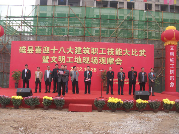 今年3月6日,磁縣住建局副局長趙志彬帶領(lǐng)質(zhì)量、安全監(jiān)督部門到項(xiàng)目部進(jìn)行檢查指導(dǎo),對形象策劃、現(xiàn)場布置、場容場貌等方面給予了很高的評價(jià),并確定將該項(xiàng)目作為轄區(qū)建設(shè)工地的標(biāo)桿。對此工程公司十分重視,加大了安全文明施工投入力度,嚴(yán)格按照國家AAA級文明工地的標(biāo)準(zhǔn)進(jìn)行常規(guī)管理,本項(xiàng)目現(xiàn)已在磁縣成為亮點(diǎn)工程,取得了良好的社會(huì)效應(yīng)。