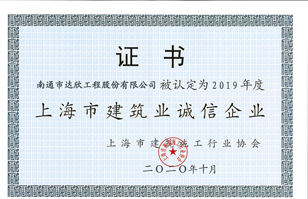 近日,上海市建筑施工行業(yè)協(xié)會官網(wǎng)發(fā)布了《關(guān)于公布2019年度上海市建筑業(yè)誠信企業(yè)的通知》( 滬建施協(xié)(2020)25號)。達(dá)欣集團(tuán)再次榮獲“上海市建筑業(yè)誠信企業(yè)”稱號,這是集團(tuán)連續(xù)12年獲得該項榮譽(yù)。