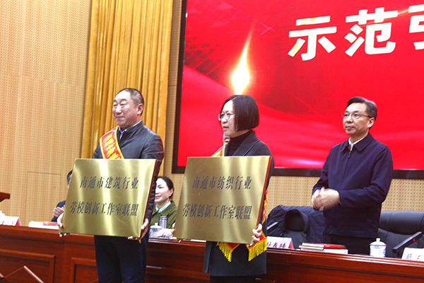 儀式上,對(duì)在開(kāi)展勞模創(chuàng)新工作室創(chuàng)建和勞模黨支部“薪火工程”系列行動(dòng)中,大力弘揚(yáng)勞模精神、勞動(dòng)精神和工匠精神,充分發(fā)揮勞模在推動(dòng)高質(zhì)量、建設(shè)“強(qiáng)富美高”新南通中起到示范引領(lǐng)作用的先進(jìn)典型進(jìn)行了表?yè)P(yáng),集團(tuán)創(chuàng)建的“馬和軍勞模創(chuàng)新工作室黨支部”被命名“南通市十佳勞模創(chuàng)新工作室黨支部”榮譽(yù)稱(chēng)號(hào),同時(shí),集團(tuán)副總經(jīng)理、工會(huì)主席溫鶴華還接收了“南通市建筑行業(yè)勞模創(chuàng)新工作室聯(lián)盟”的牌匾。