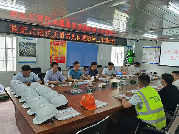 吳慧強從項目概況、前期準(zhǔn)備、常見問題和防治、現(xiàn)場不足五方面向領(lǐng)導(dǎo)們作了匯報。他表示,項目部將結(jié)合工程實際經(jīng)驗,積極為裝配式產(chǎn)業(yè)發(fā)展建言獻策。