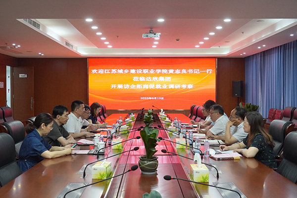 王邦國(guó)總經(jīng)理對(duì)黃志良書記等校方領(lǐng)導(dǎo)的一行蒞臨調(diào)研指導(dǎo),表示熱烈的歡迎。他結(jié)合行業(yè)形勢(shì),就達(dá)欣近幾年的發(fā)展情況以及市場(chǎng)開拓、未來發(fā)展等內(nèi)容作了介紹,他表示,達(dá)欣與江蘇城鄉(xiāng)建設(shè)職業(yè)學(xué)院結(jié)緣多年,雙方在理念、共識(shí)上有高度的契合點(diǎn),希望雙方在接下來的合作中,不斷尋找產(chǎn)教融合的新方向和新途徑,共同發(fā)展、合作共贏。
