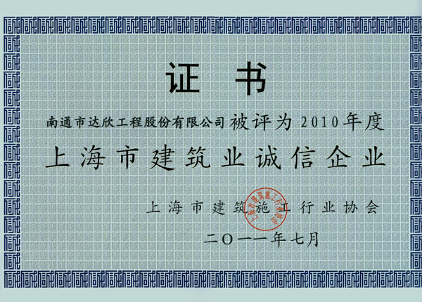 日前,在上海市建筑施工行業(yè)協(xié)會舉辦的企業(yè)誠信建設行業(yè)評審活動中,第一工程公司榮獲“2010年度上海市建筑業(yè)誠信企業(yè)”稱號。 這是第一工程公司連續(xù)5年獲此殊榮。