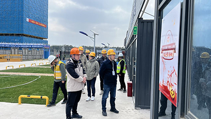 繆永建書記一行仔細(xì)聽取了本工程進(jìn)度情況,深入了解施工現(xiàn)場,檢查現(xiàn)場管理,詢問施工中遇到的困難,并給予解決意見和建議。同時,他對施工現(xiàn)場管理表示肯定,他指出達(dá)欣作為南通建筑行業(yè)的明星單位,要爭取在今年上半年南通市區(qū)安全生產(chǎn)觀摩工地展現(xiàn)出項(xiàng)目的亮點(diǎn)和品質(zhì)。
