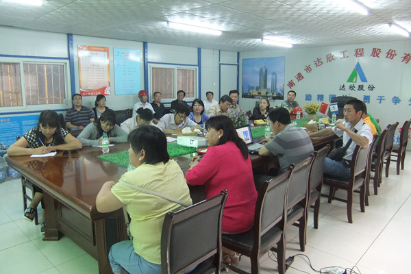 6月28日上午,來自蒙古國工業(yè)建筑學(xué)院建筑系的領(lǐng)導(dǎo)和教師一行20人在唐山市住建局、質(zhì)監(jiān)站領(lǐng)導(dǎo)的陪同下,對我司承建的鳳城國際廣場項(xiàng)目部進(jìn)行了實(shí)地參觀學(xué)習(xí)。項(xiàng)目經(jīng)理張維琪通過幻燈演示將工程概況、質(zhì)量控制、安全文明施工等向客人作了一一的介紹,隨行翻譯人員同步進(jìn)行了翻譯。