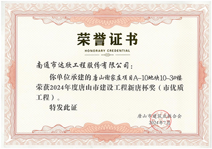 近日,由第六工程公司承建的唐山謝家莊項(xiàng)目A-10地塊10-3#樓、唐山謝家莊項(xiàng)目A-14地塊14-3#樓、14-5#樓榮獲“2024年度唐山市建設(shè)工程新唐杯獎(jiǎng)(市優(yōu)質(zhì)工程)”。