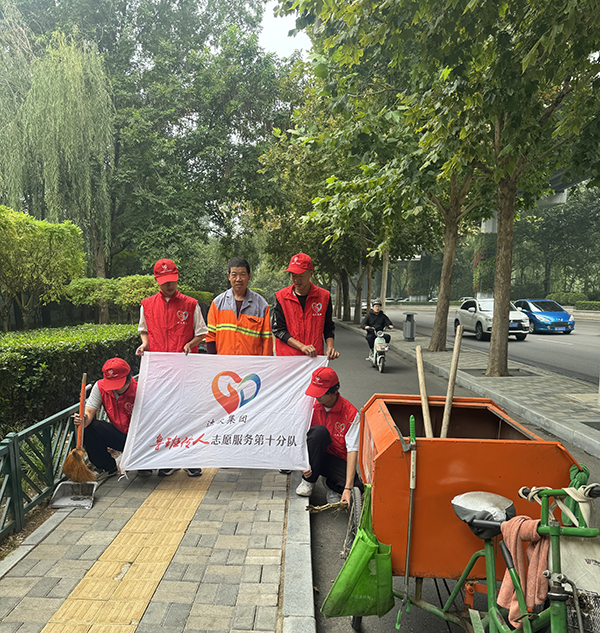 9月26日下午,達(dá)欣集團•魯班傳人志愿服務(wù)隊第十分隊在邵鵬偉的帶領(lǐng)下走到街區(qū),與環(huán)衛(wèi)工人一起清掃街道。
