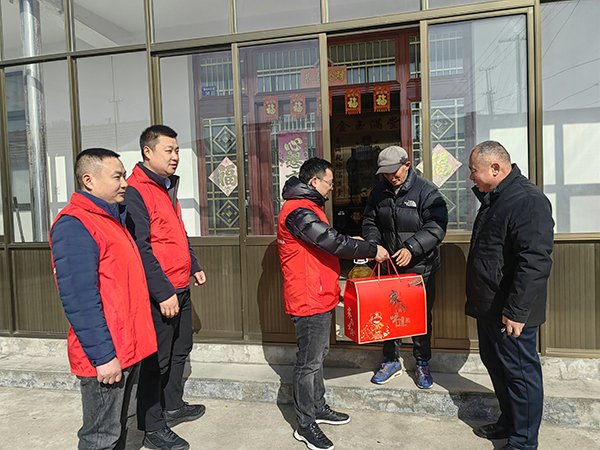 志愿者們帶著食用油、豬肉、香腸、雞等物資在擁徐村村書記的帶領(lǐng)下來到貧困戶家中。村書記詳細介紹了每個貧困戶的基本情況。志愿者們與村民交談,傾聽他們的所思所盼,了解村民的基本生活狀況等問題,村民們對集團的關(guān)心和慰問表示感動和感謝。