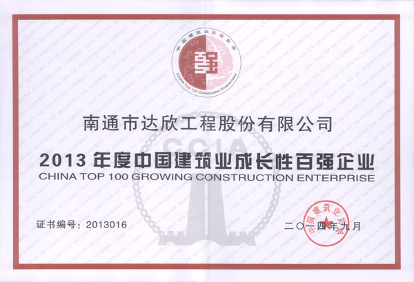 根據(jù)《中國建筑業(yè)雙百強(qiáng)企業(yè)評(píng)價(jià)辦法》,經(jīng)企業(yè)申報(bào)、各地區(qū)和有關(guān)行業(yè)建筑業(yè)(建設(shè))協(xié)會(huì)審核、中建協(xié)復(fù)核、專家評(píng)審、公示等程序,我公司入選2013年度中國建筑業(yè)成長性百強(qiáng)企業(yè),名次排位第16名,較2012年度提升12位,較2011年度提升32位。