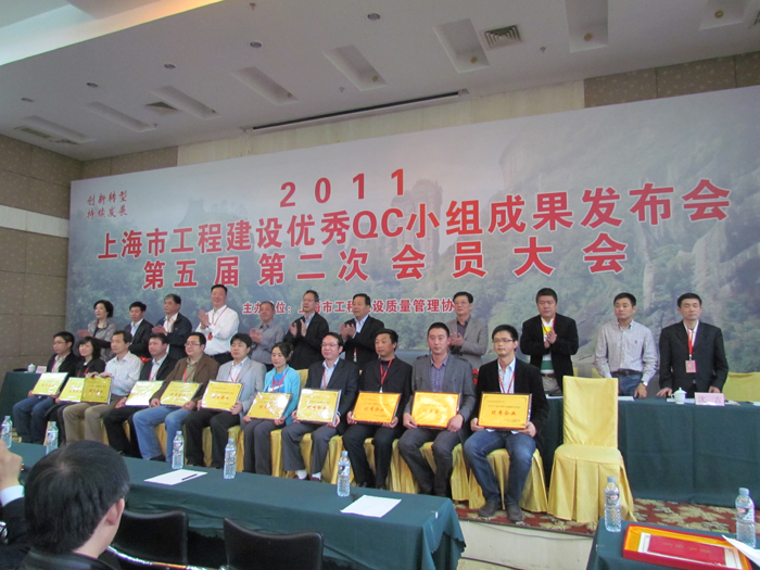4月17日上海市工程建設(shè)質(zhì)量管理協(xié)會召開2011年建設(shè)工程優(yōu)秀QC小組活動成果發(fā)布會暨第五屆第二次會員大會。第一工程公司選送的 “攻克3m厚大體積砼底板裂縫”、“提高施工現(xiàn)場安全達標優(yōu)良率”、“推行‘四節(jié)一環(huán)保’有效降低工程成本”、“提高建筑幕墻工程的施工質(zhì)量”、“有效控制填充墻內(nèi)混凝土構(gòu)造柱裂縫”、“有效控制斜屋面混凝土施工質(zhì)量”、“提高YTONG砂加氣砼砌塊砌筑合格率”、“有效提高模板工程施工質(zhì)量”、“降低明珠城三期工程鋼筋損耗”等九項QC成果均參加本次活動的發(fā)布與交流。這次江蘇省在滬企業(yè)參加QC成果發(fā)布、交流共83篇,我公司就占據(jù)其中的14%,得到了駐滬辦領(lǐng)導(dǎo)的充分肯定。工程公司也被上海市工程建設(shè)質(zhì)量管理協(xié)會評為2011年上海市建設(shè)質(zhì)量管理小組活動優(yōu)秀企業(yè)。