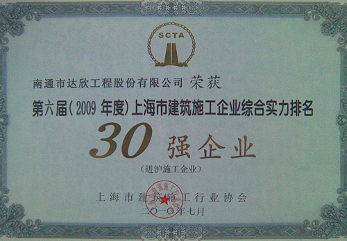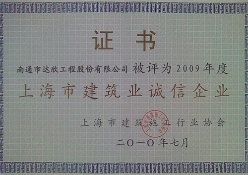 達欣股份首次挺進進滬施工企業(yè)前30強(進滬施工的江蘇企業(yè)僅有八家),這標(biāo)志著公司跨入了進滬強企的第一方陣,標(biāo)志著公司進滬施工進入了新階段!同時公司還再次榮獲了“上海市建筑業(yè)誠信企業(yè)”稱號。上海市的主流媒體“解放日報”、行業(yè)報刊“建筑時報”均予以報導(dǎo)。