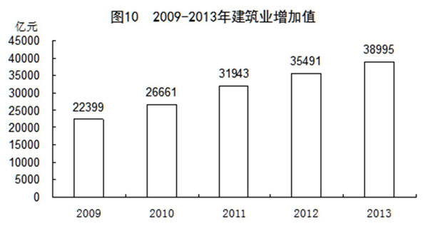 2013年全國(guó)建筑業(yè)增加值38995億元,比上年增長(zhǎng)9.5%。全國(guó)具有資質(zhì)等級(jí)的總承包和專業(yè)承包建筑業(yè)企業(yè)實(shí)現(xiàn)利潤(rùn)5575億元,增長(zhǎng)16.7%,其中國(guó)有及國(guó)有控股企業(yè)1363億元,增長(zhǎng)20.1%。