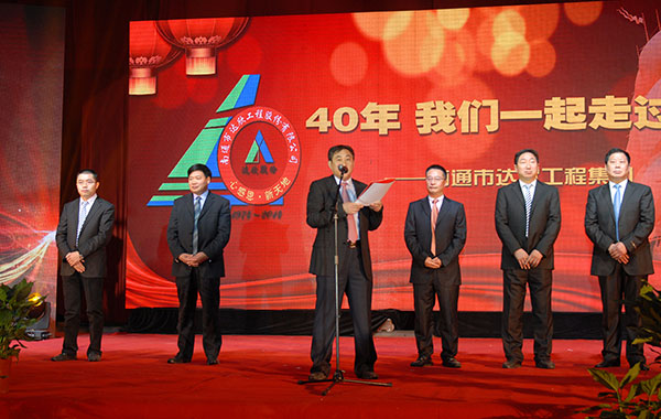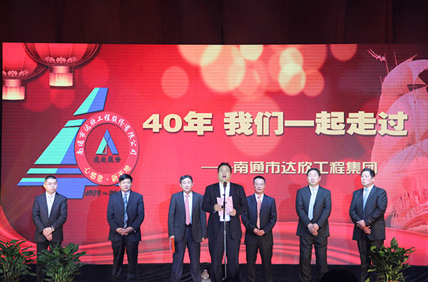 公司董事長馬和軍進行了致辭答謝。他說在這樣一個特殊的時刻和一個特殊的地點,我們正做著一件具有特別意義的事情。我們一起回顧達欣的光榮歷史,一起回味達欣40年來經(jīng)歷的風(fēng)風(fēng)雨雨,一起品嘗我們用勤勞和智慧的雙手攢獲的豐收和喜悅。40年來,我們始終堅持改革,并最終受益于改革;40年來,我們傳承并不斷發(fā)揚光大著一種精神,這種精神的核心就是“艱苦奮斗,以身作則”、“團結(jié)拼搏,顧全大局”、“凝心聚力,勇于爭先”;40年來,在達欣這個大家庭中始終洋溢著一種濃濃的情誼。站在達欣40年這個歷史新起點上,相信達欣的光輝旗幟,一定會更好地迎風(fēng)展揚、高高展揚、百年展揚;在熱烈的掌聲中,縣委書記陸衛(wèi)東發(fā)表重要講話,他指出,今天我們共同見證和分享達欣集團四十年發(fā)展的成功和喜悅,作為縣內(nèi)的標(biāo)桿建筑企業(yè),達欣步入了公司歷史以來發(fā)展最快、榮譽最高、分配最多、貢獻最大的時期,他希望公司要進一步深化改革,加快發(fā)展,高起點定位,突出重點,好中求快,實現(xiàn)達欣集團的新飛躍。