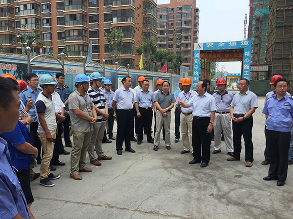 8月27日上午,宿遷市副市長李榮錦率市住建局主要負責(zé)人及宿遷市10余家建設(shè)單位、監(jiān)理單位、施工單位負責(zé)人蒞臨第一工程公司承建的星月城二期進行參觀考察,這是李榮錦副市長繼8月18日檢查指導(dǎo)后第二次來我項目,重點推介項目揚塵噴水設(shè)備系統(tǒng)控制做法及現(xiàn)場安全文明標(biāo)準(zhǔn)化施工特色。
