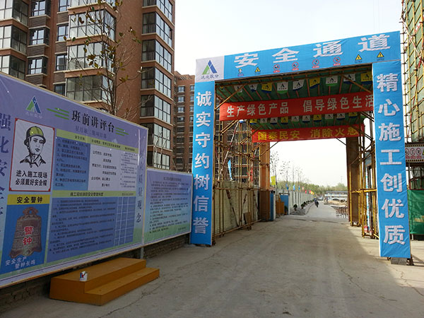 參觀考察結(jié)束前,李副市長在工地現(xiàn)場發(fā)表講話。首先,他對本項目現(xiàn)場布置、標(biāo)準(zhǔn)化定型化的臨時設(shè)施以及綠色防塵控制措施給予了充分肯定,特別是對現(xiàn)場布置的車輛沖洗裝置更是贊不絕口,他要求參與考察的各施工方能夠大力推廣此種車輛沖洗裝置做法,為宿遷環(huán)境保護作出貢獻;其次,他要求市住建局要加強建筑工地督查,對不符合要求的建筑工地要求限期整改,并按規(guī)定對所有建筑工地進行統(tǒng)一檢查驗收,對整改不到位的,追究相關(guān)責(zé)任人責(zé)任,按相關(guān)規(guī)定進行處理;最后,他要求前來參觀的建設(shè)、監(jiān)理、施工單位要借鑒本項目部的現(xiàn)場管理模式,認真總結(jié)自身管理不足之處,務(wù)必學(xué)以致用,促進宿遷市施工現(xiàn)場管理工作和安全工作上走上新臺階。